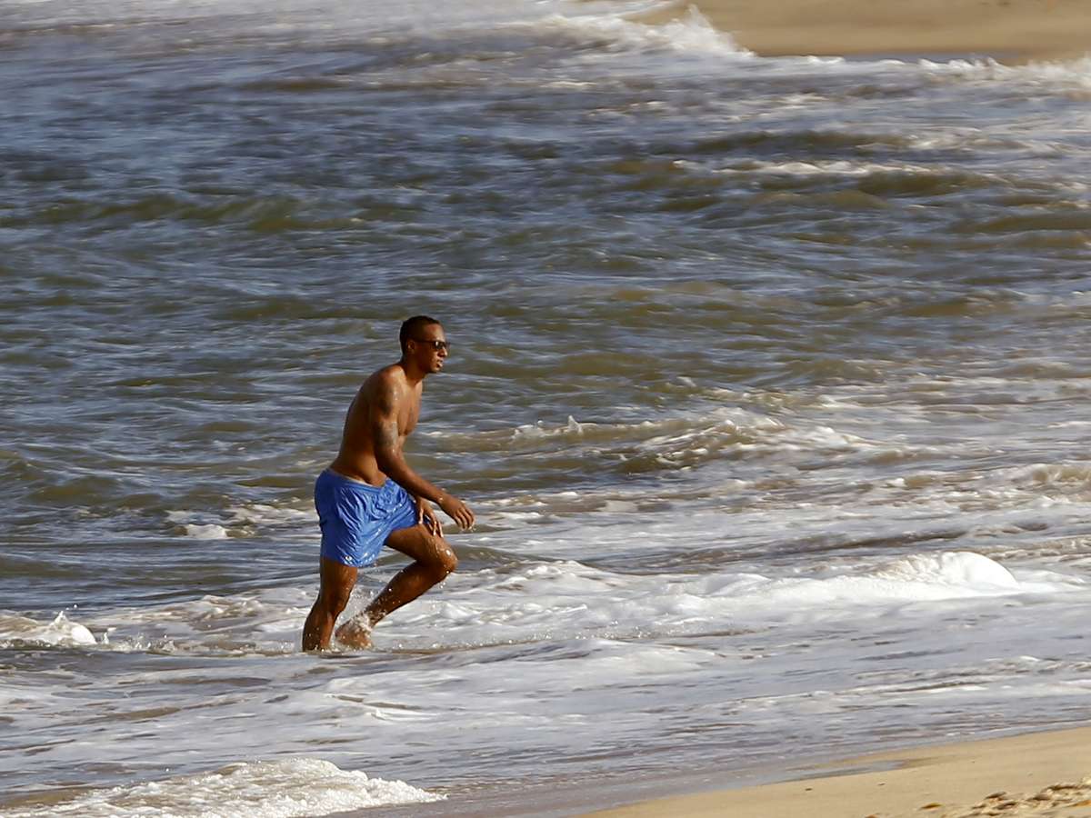 Um dia depois de vencer a Argélia e se classificar para as quartas de final, a seleção da Alemanha curtiu nesta terça-feira um dia de descanso na praia de Porto Seguro, na Bahia. Na foto, Benedikt Howedes e sua namorada, Lisa, caminham na beira da praia