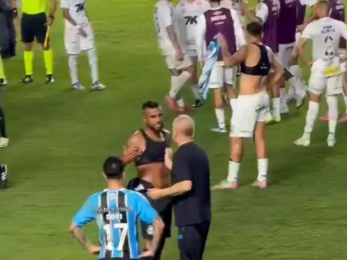 Mano Menezes e Alex Santana tiveram um desentendimento após o empate em 1 a 1 entre Grêmio e Santos, em cena registrada por torcedor na Vila Belmiro.