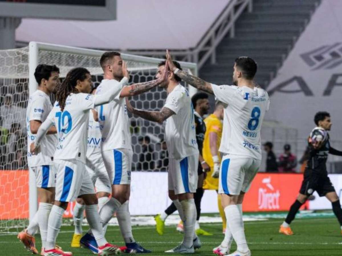 Com gol brasileiro, time reage após sair atrás, faz 5 a 3 fora de casa e mantém pressão sobre o líder Al-Ahli na reta decisiva do campeonato