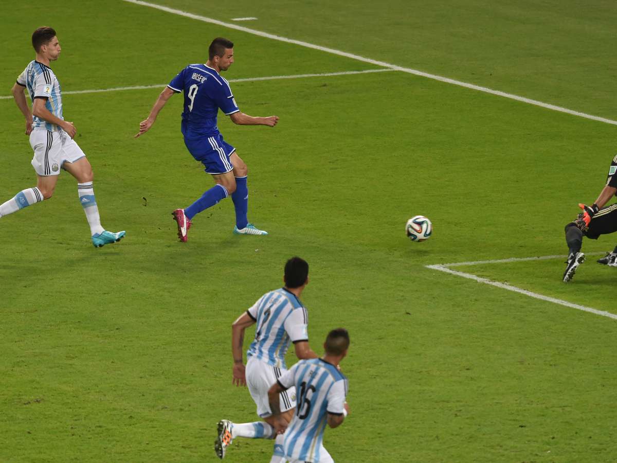 No final do segundo tempo, o atacante Vedad Ibisevic recebeu lançamento na área, pela esquerda, e tocou entre as pernas de Romero. O gol, além de diminuir o placar na derrota contra a Argentina por 2 a 1, representou o primeiro gol da Bósnia em uma Copa do Mundo, já que a seleção é estreante; veja sequência do lance