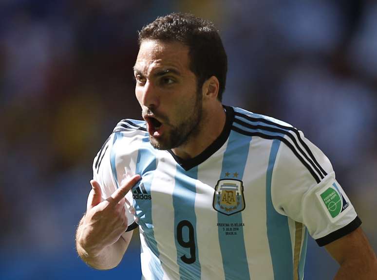 Higuaín abre o placar para a Argentina durante o jogo contra a Bélgica