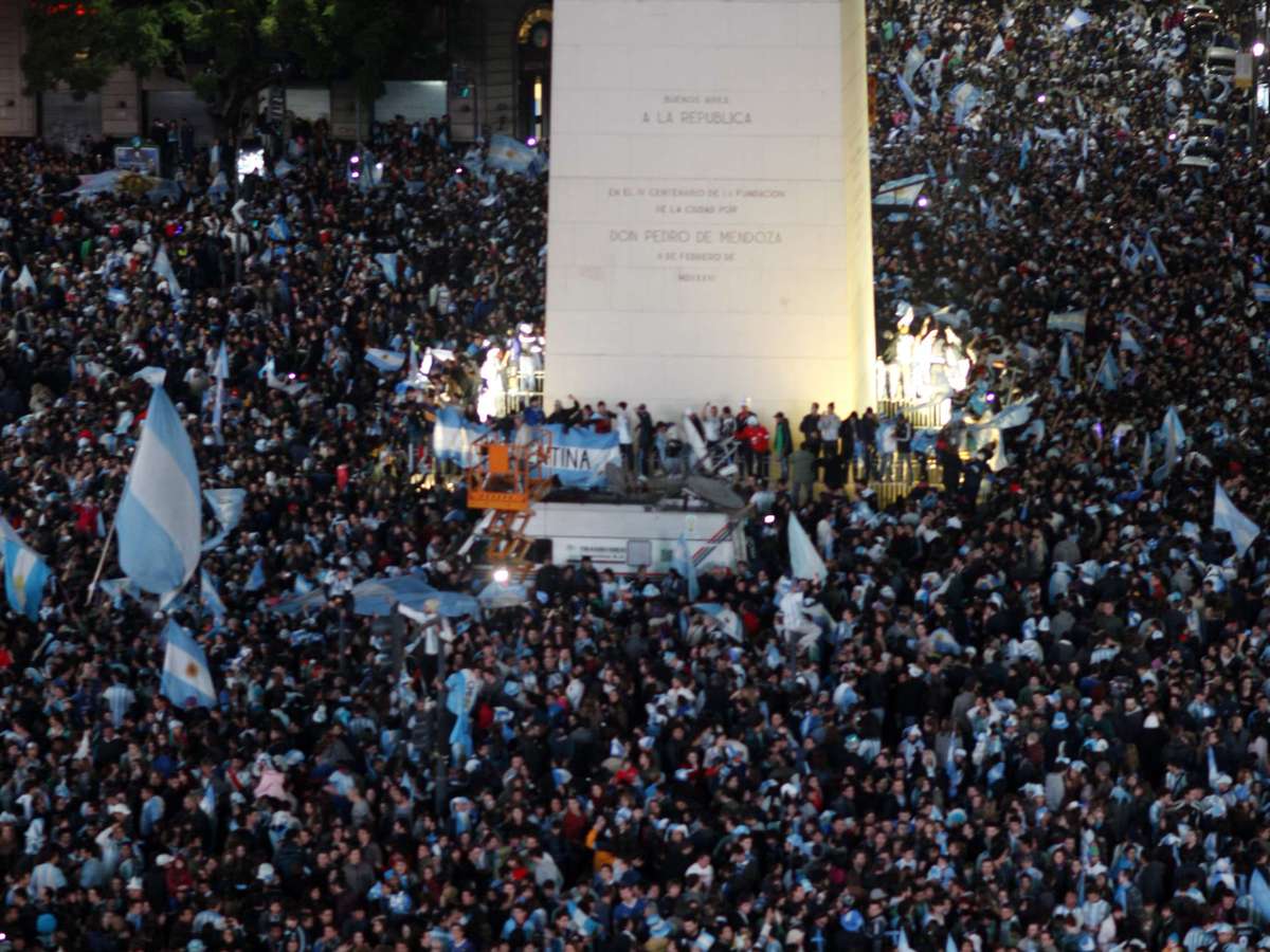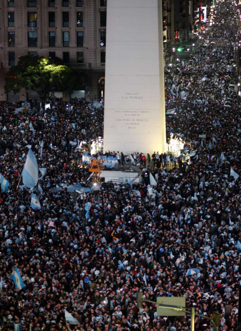 Milhares de argentinos festejaram a vitória e a independência na praça da República, em Buenos Aires, junto ao Obelisco