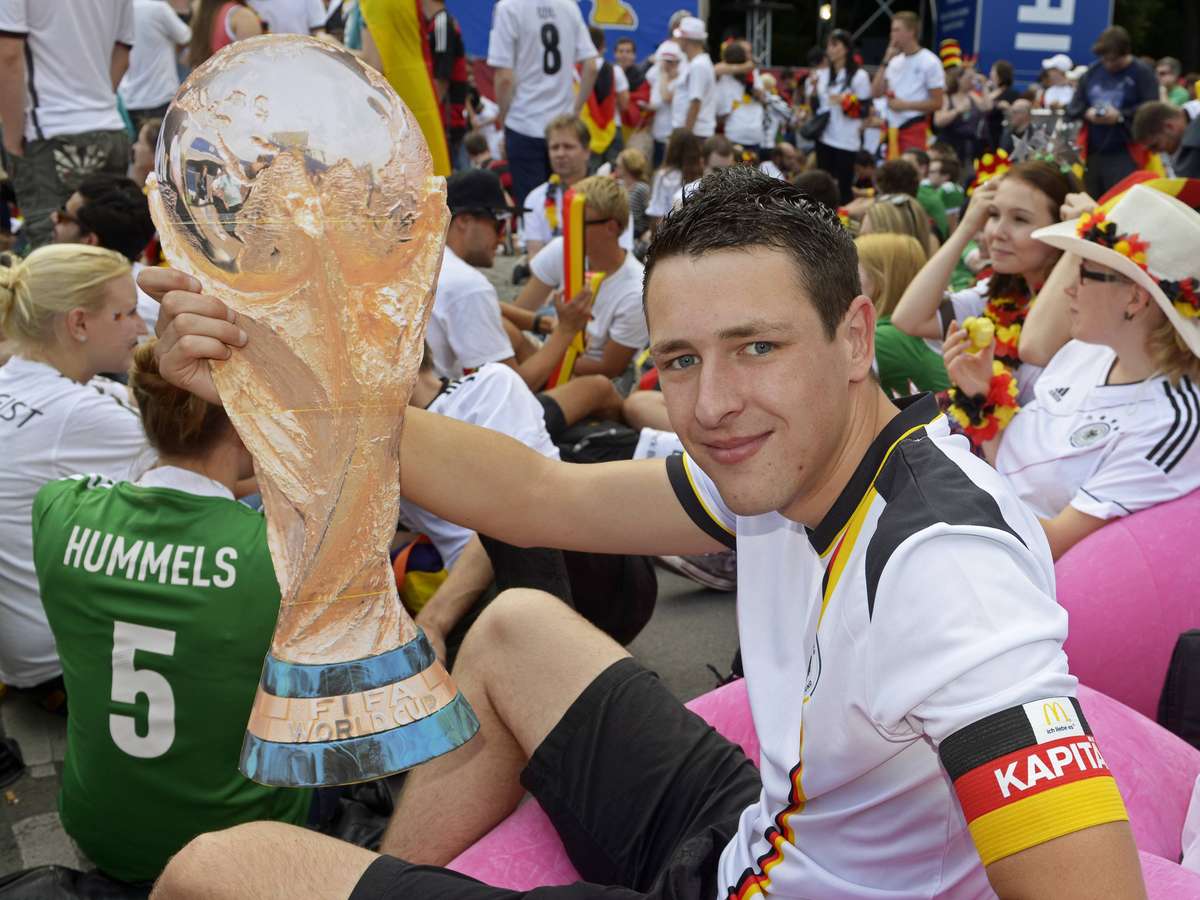 Em Berlim, na Alemanha, torcedores aguardam a final da Copa do Mundo entre sua seleção e Argentina