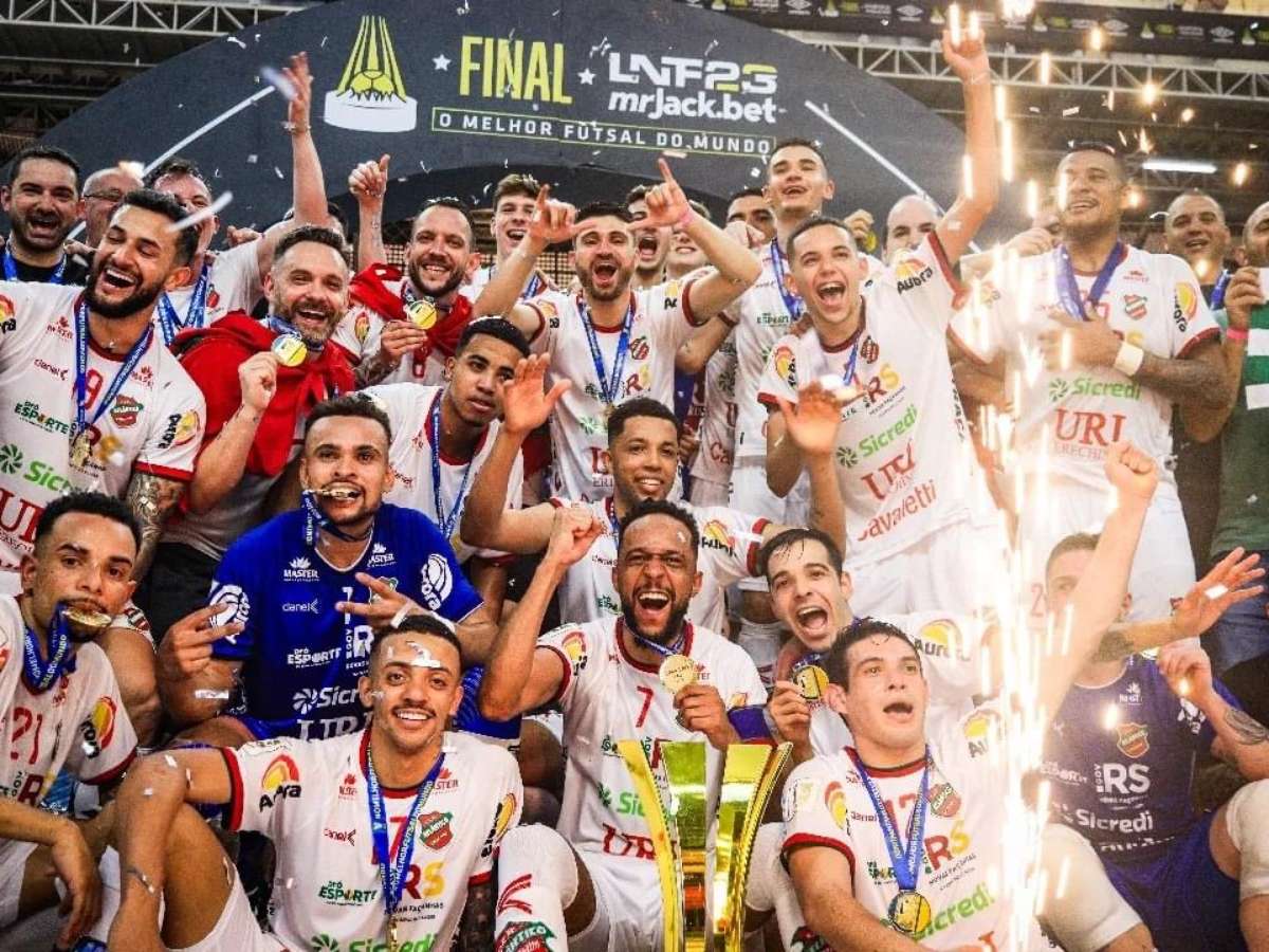 O Atlântico comemorou neste domingo o título da edição 2023 da Liga Nacional de Futsal. O Galo de Erechim (RS) faturou a taça com uma vitória dramática sobre o Joinville por 2 a 1, em jogo único em quadra neutra, na cidade de Toledo (PR).