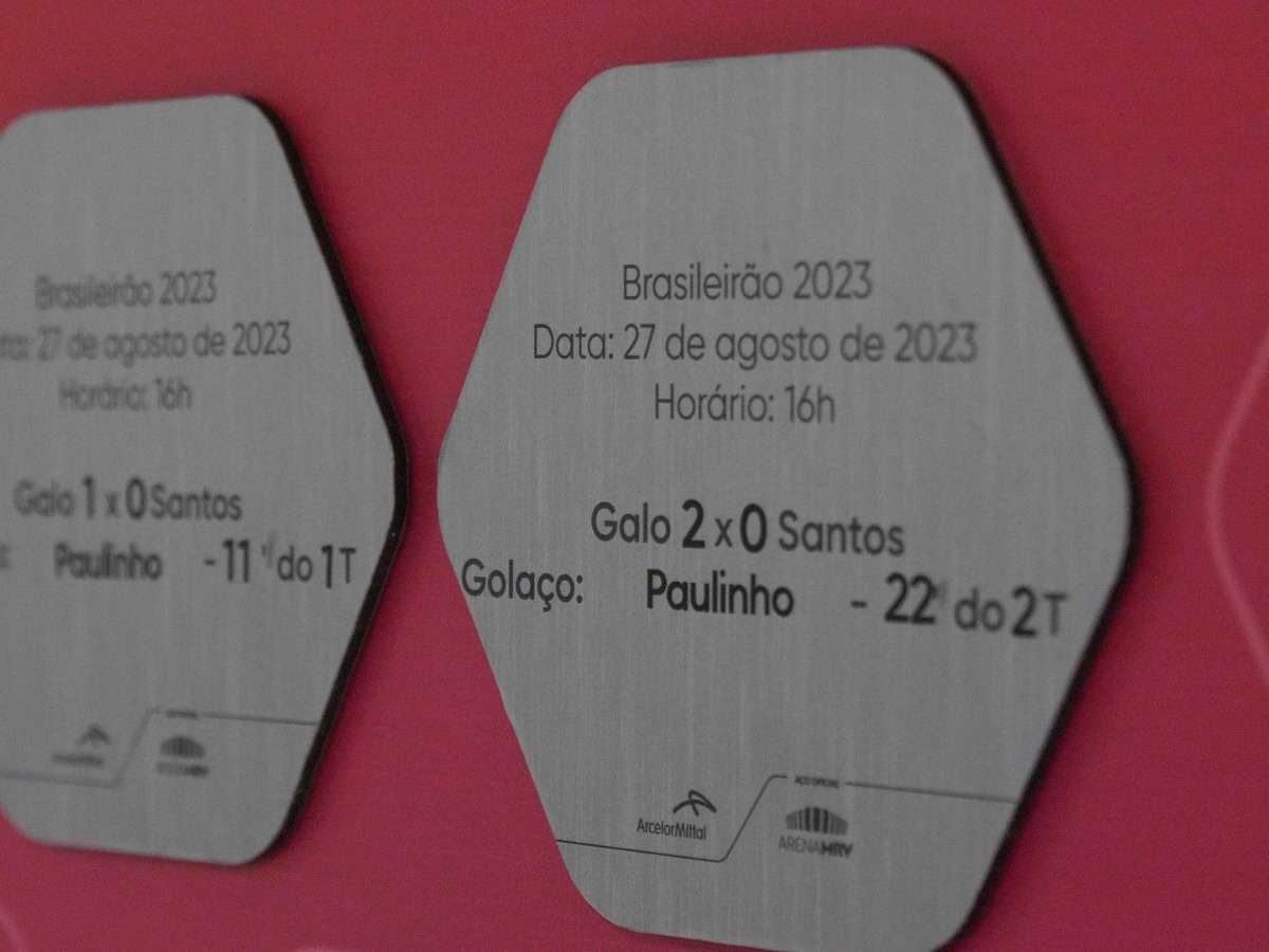 As placas em aço terão nome do jogador que fizer o gol e dados como data, minuto, tempo e adversário. O próximo jogo da Arena MRV será no dia 16 de setembro, uma partida entre Atlético-MG x Botafogo. Antes disso, o Galo enfrenta o Athletico-PR, no pr;óximo sábado (02), na Ligga Arena, em Curitiba.