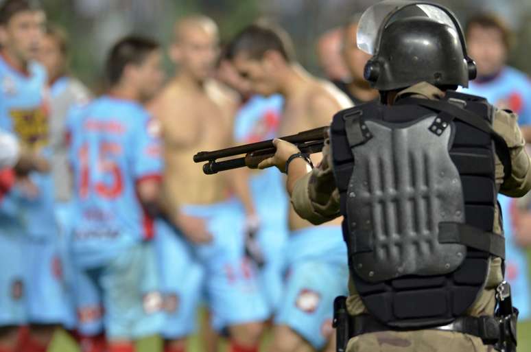 Pouco tempo após o início do conflito com os atletas do Arsenal, alguns policiais armados entraram no gramado e apontaram para os jogadores do time argentino. Porém, nenhum tiro foi disparado