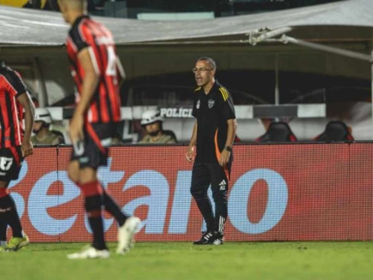 O técnico interino do Atlético, Lucas Gonçalves, explicou sua tática ousada na derrota de 1 a 0 para o Vitória. No final do jogo, a equipe terminou com seis atacantes em campo. A partida, neste domingo (31), terminou com o placar de 1 a 0 para o time baiano. O treinador, contudo, justificou a escolha pela necessidade do resultado. A falta de confiança do time, segundo ele, atrapalhou a busca pelo empate.