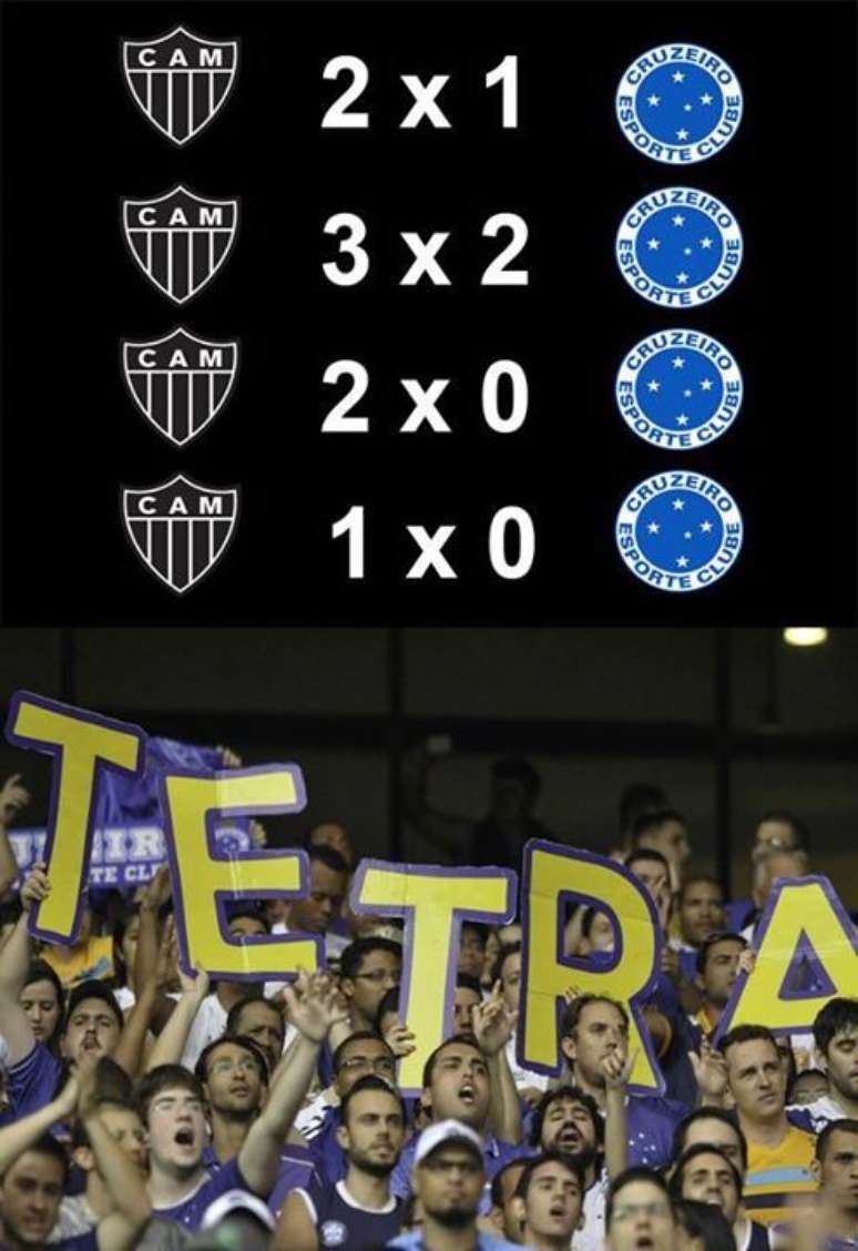 O maior clássico mineiro da história terminou com alegria apenas para o lado alvinegro. Com atuações dominantes tanto no Independência quanto no Mineirão, o Atlético-MG faturou a Copa do Brasil após duas vitórias sobre o maior rival Cruzeiro e, agora, certamente está fazendo a festa de muitos torcedores. Esta foi, afinal, a primeira decisão nacional envolvendo os dois maiores times de Minas Gerais em todos os tempos. Até mesmo a presidenta Dilma Roussef aproveitou para ironizar o seu maior adversário nas eleições deste ano, Aécio Neves. Mas calma... Isso não aconteceu na realidade. Trata-se, apenas, de um dos muitos memes criados pelos internautas para repercutir a final da Copa do Brasil. Veja, abaixo, os melhores: