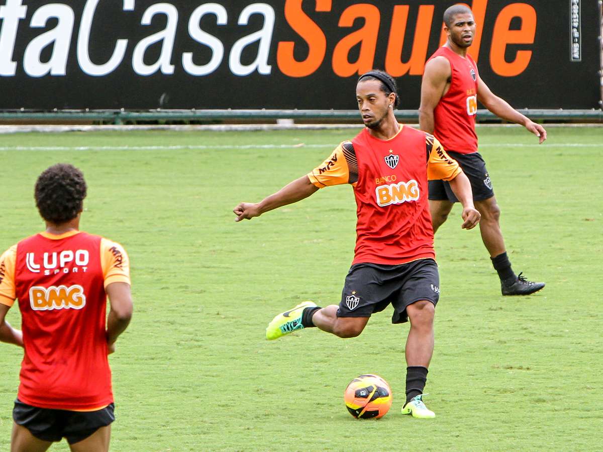 Dois meses após lesão, Ronaldinho volta a treinar no Atlético-MG