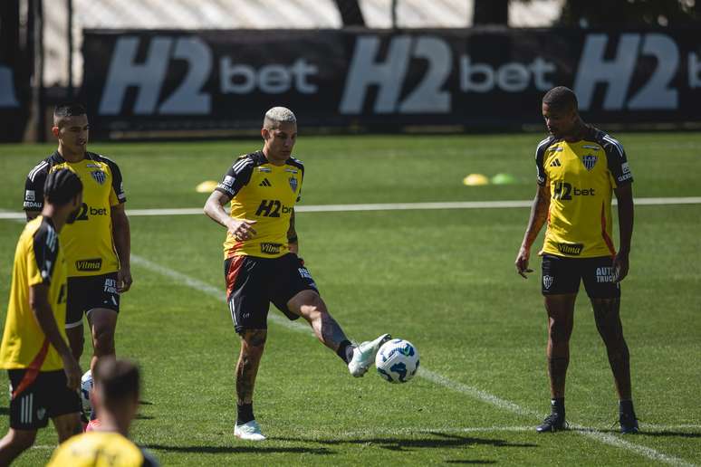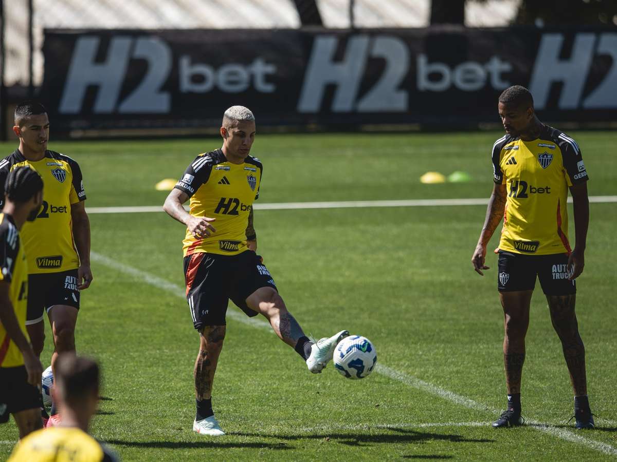 O Galo deve ir pro campo com: Everson; Natanael (Saravia), Vitor Hugo (Iván Román), Junior Alonso e Arana; Alan Franco, Alexsander (Gabriel Menino) e Gustavo Scarpa (Igor Gomes); Rony (Biel), Cuello e Hulk.