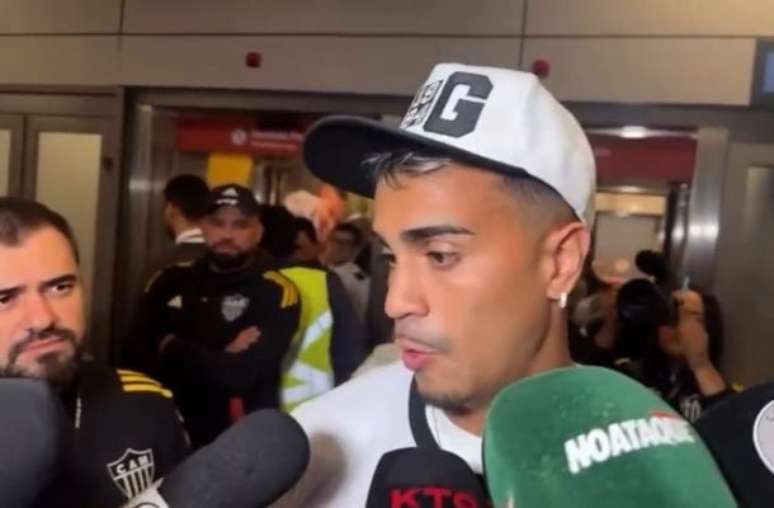 "Quando cheguei, já escutei um pouco. Fiquei até arrepiado. Minha mãe quase estava chorando. Estou muito feliz de estar no Galo, na nova casa. Feliz de ter esse carinho, que não tinha esse carinho. Feliz de poder vestir a camisa do Galo. Vou dar a vida em campo e estou preparado para ajudar o Galo".