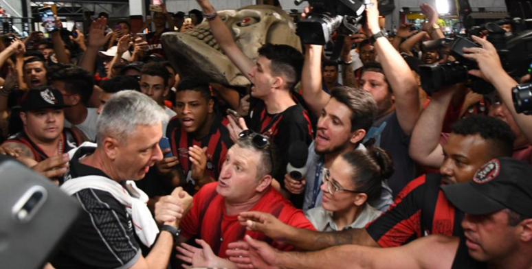 O Athletico Paranaense embarcou na tarde desta terça-feira para Porto Alegre, para disputar o segundo jogo da final da Copa do Brasil, diante do Internacional. Centenas de torcedores rubro-negros foram até o aeroporto Afonso Pena para prestigiar a equipe.