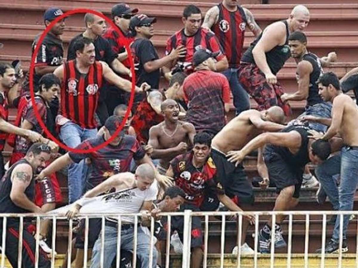Torcedor do Vasco carrega pedaço de pau durante briga contra atleticanos em Joinville