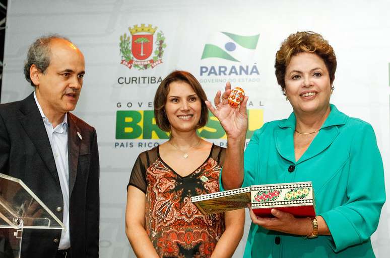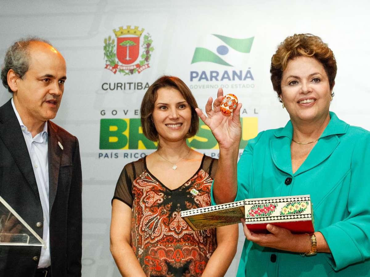 Cerca de 30 pessoas aguardam a chegada da presidente, que discursa na Federação das Indústrias do Paraná (Fiep), onde participa da cerimônia da contratação do metrô em Curitiba, através do Programa de Aceleração do Crescimento (PAC 2). O projeto envolve 17,6 km de extensão, tendo 14 estações e com uma perspectiva de 14 mil passageiros por hora, ligando o bairro do Santa Cândida até a Cidade Industrial de Curitiba (CIC).