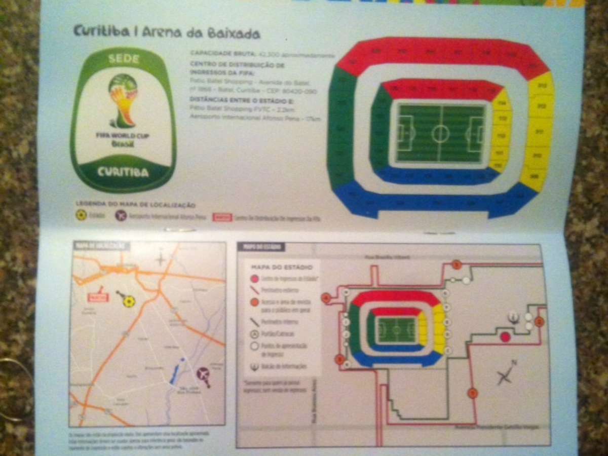 O torcedor que comprou ingresso para assistir a pelo menos uma das quatro partidas da Copa do Mundo na Arena da Baixada e não for de Curitiba, acostumado a frequentar o estádio, vai se confundir com o Guia de Ingressos feito pela Fifa.