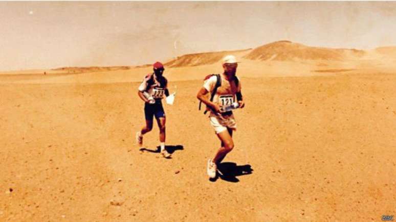 Descobri sobre a Marathon des Sables por acaso. Já tinha me aposentado do pentatlo (prova olímpica em que competidores participam dos esportes de tiro, hipismo, natação, esgrima e corrida) quando um amigo me disse: 'Há uma maratona incrível no deserto - mas é muito difícil'. Adoro um desafio, então comecei a treinar imediatamente, correndo 40 km por dia, reduzindo a quantidade de água que eu bebia para me acostumar com a desidratação.