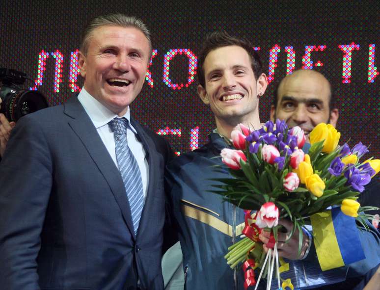 Bubka estava presenta na competição em Donetsk, Ucrânia, e parabenizou Lavillenie pela conquista histórica