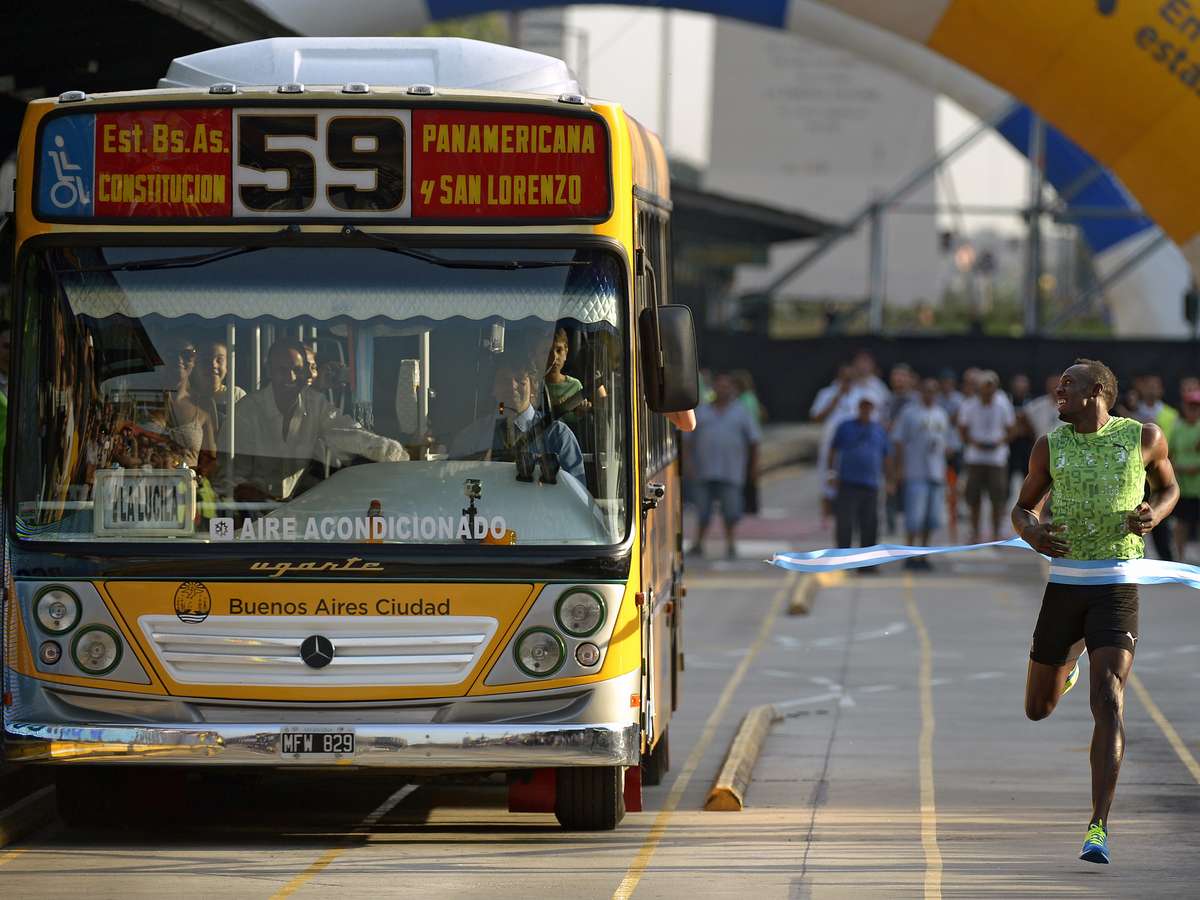 Em Buenos Aires, além de vencer um ônibus, Bolt ainda disse que não disputará os 400 m no Rio de Janeiro