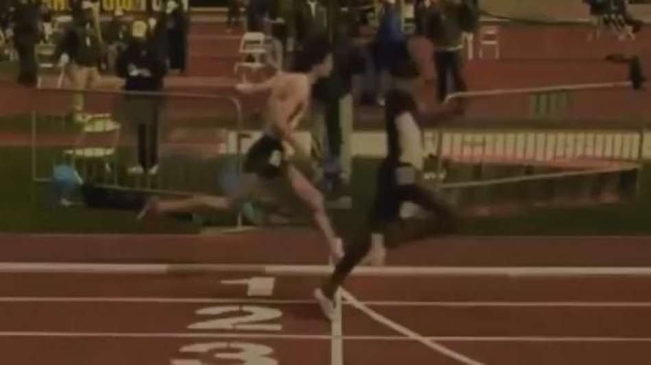 Tanguy Pepiot, corredor do time universitário de Oregon, decidiu comemorar a vitória em uma corrida antes da linha de chegada e acabou sendo ultrapassado por Meron Simon nos últimos metros