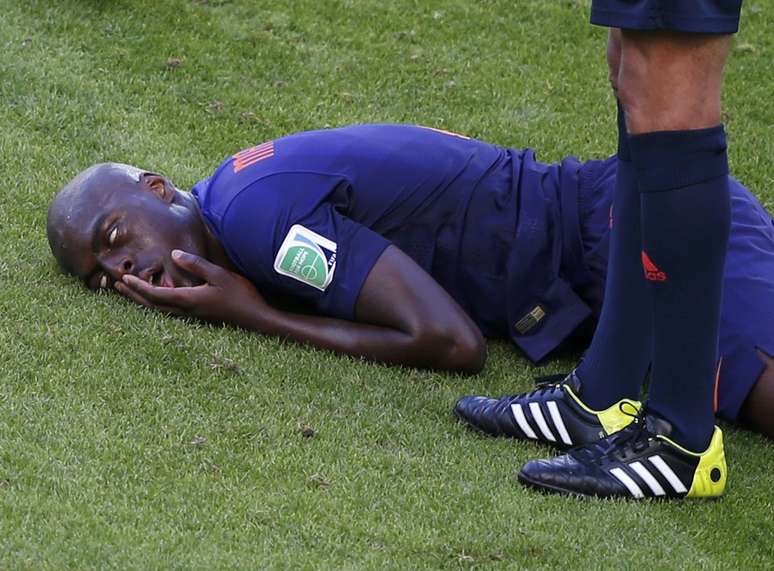 Cahill comete falta em Indi, durante jogo entre Austrália e Holanda, no Estádio Beira-Rio, em Porto Alegre; jogador holandês fica inconsciente no gramado.