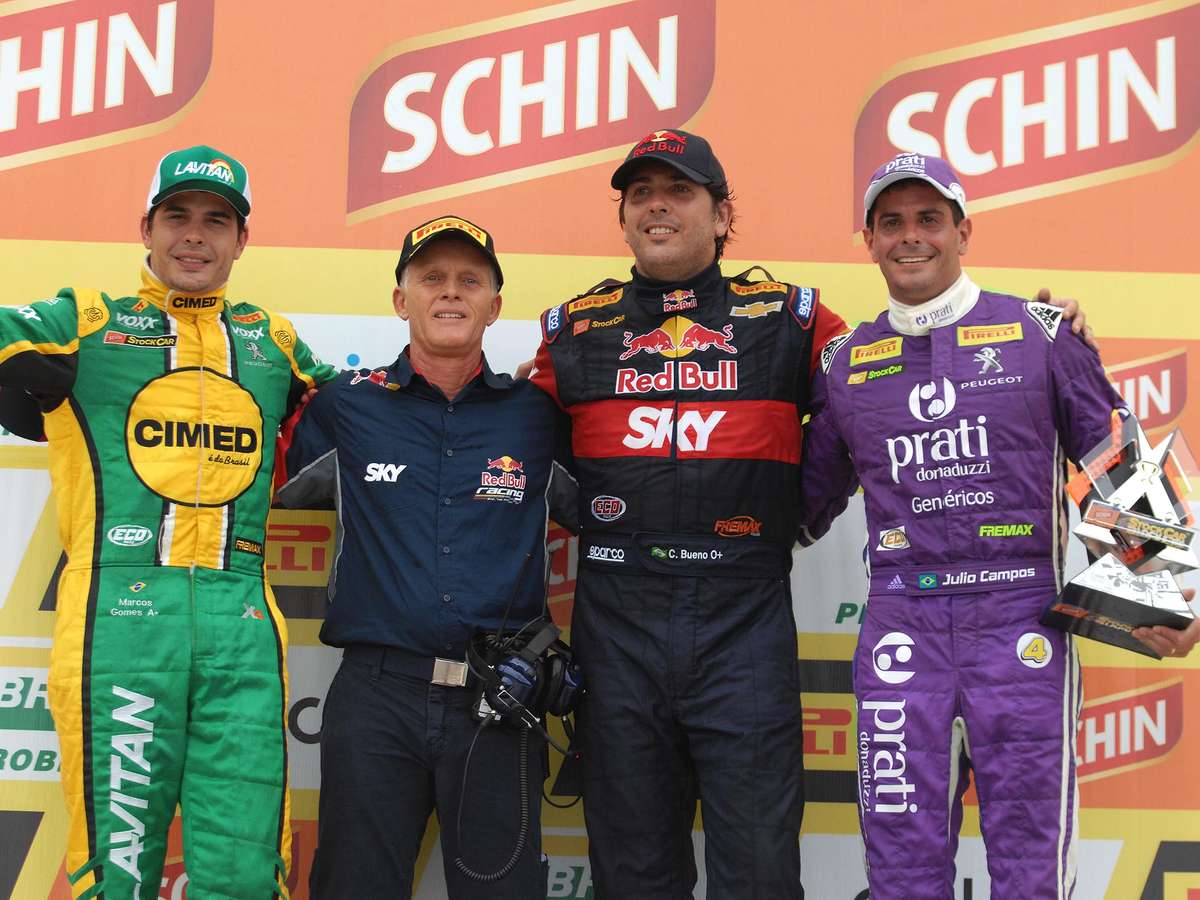 Na primeira corrida do dia, Cacá Bueno, campeão nas temporadas de 2006, 2007, 2009, 2011 e 2012, venceu pela primeira vez desde junho de 2013, quando triunfou na etapa de Brasília. Marcos Gomes ficou em segundo e Júlio Campos completou o pódio em Ribeirão Preto.