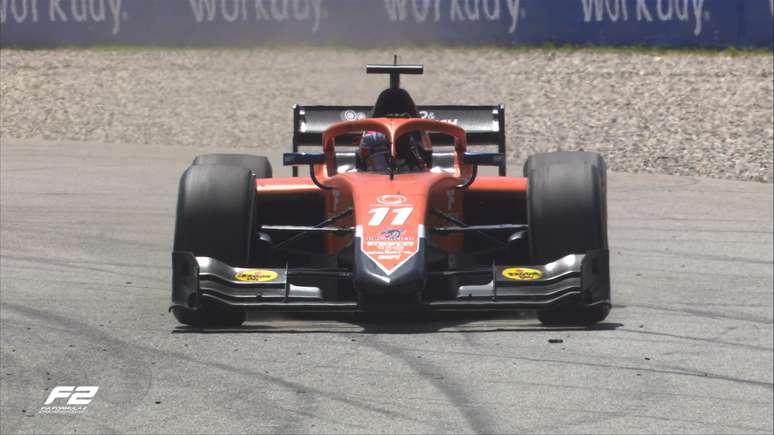 Quem aparecia em segundo, com estratégia inversa, era Fittipaldi. De pneus duros, o brasileiro da Charouz permanecia na pista, porém a 15s7 do compatriota.
