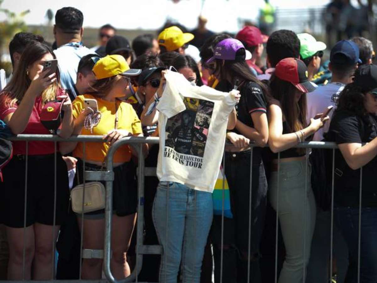 Um dos momentos de maior expectativa para os fãs em Interlagos nesta manhã foi a concorrida chegada de Lewis Hamilton a Interlagos. O inglês da Mercedes, desta vez, apareceu vestido sem as cores da bandeira brasileira. Aclamado pelos fãs, ele vestia camiseta regata vermelha, combinando com as cores dos óculos. Simpático, atendeu alguns fãs com autógrafos e fotografias.