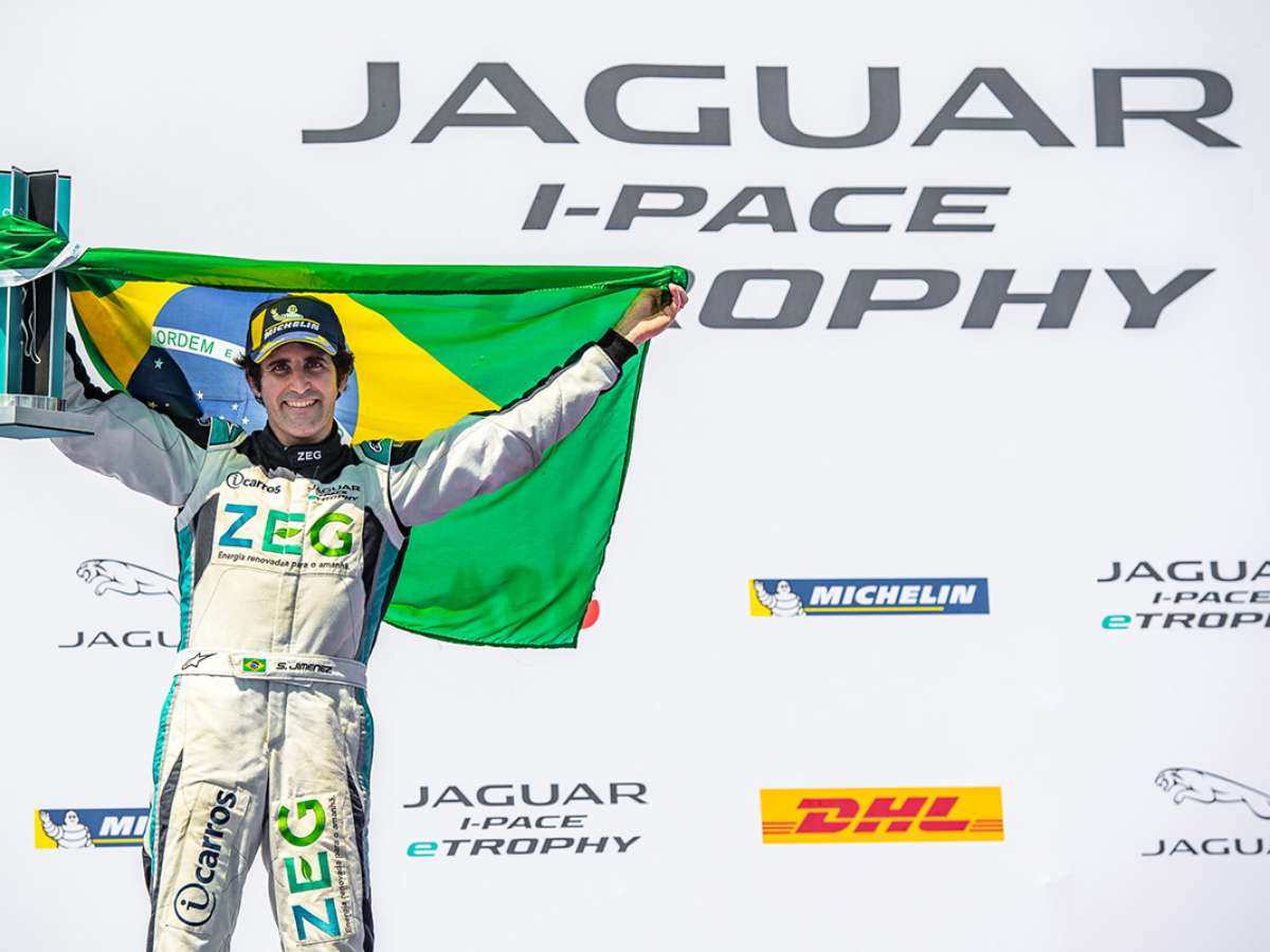 O primeiro campeão mundial de uma categoria com carros de turismo 100% elétrico é o brasileiro Sérgio Jimenez. O piloto de Piedade (SP) conquistou a vitória de ponta a ponta neste sábado no Jaguar I-PACE eTROPHY em Nova York e, de quebra, levou o título da temporada com uma corrida de antecipação.