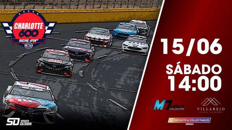 As 600 milhas virtuais de Charlotte acontecem neste sábado (15 de junho) com transmissão ao vivo da Racing4Fun TV.
