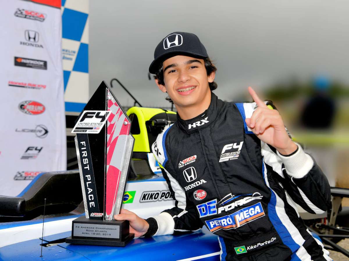 Fim de semana praticamente perfeito para o piloto brasileiro Kiko Porto (Petromega / BF / DEForce Racing / Speed Group). Na rodada tripla que abriu a temporada 2019 da F4 Americana, o pernambucano deu show no traçado do Michelin Raceway Road Atlanta, na cidade Braselton, no Estado da Geórgia. Com um 2º, 1º e 3º lugares, respectivamente, ele somou 59 pontos e assumiu a liderança do campeonato, além de garantir a primeira vitória na categoria.