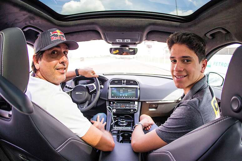 Maior campeão atividade com cinco títulos, Cacá Bueno fez uma volta com um carro de passeio junto com Marcel Coletta, piloto que estreia neste final de semana com 17 anos e 5 meses na Stock Car