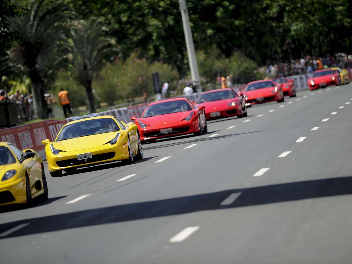 Ferrari de diversos tipos e cores foram exibidas no Aterro do Flamengo