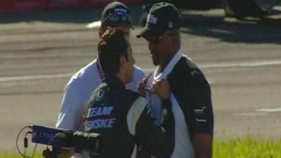Fórmula Indy Revoltado, Castroneves pega fiscal de prova pelo colarinho Exibir comentários Compartilhar Descontrolado, piloto brasileiro se revolta após punição que lhe tirou vitória no GP de Edmonton, no Canadá Indycar Series Publicidade