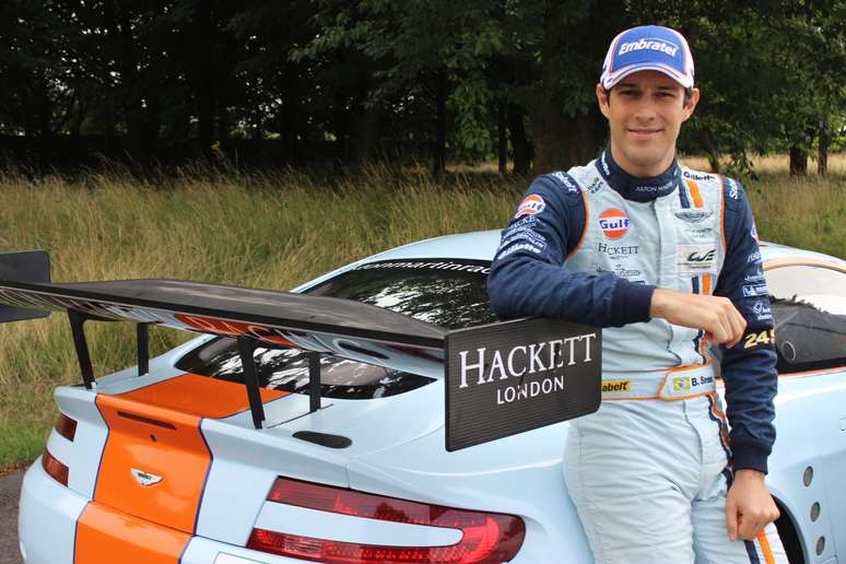 Feliz por seu bom desempenho no Mundial de Endurance, Bruno Senna recebeu jornalistas para dar uma volta em seu carro, em Warwik
