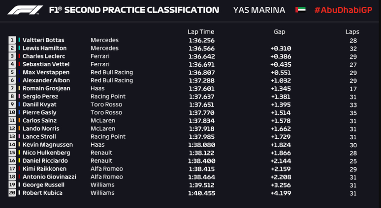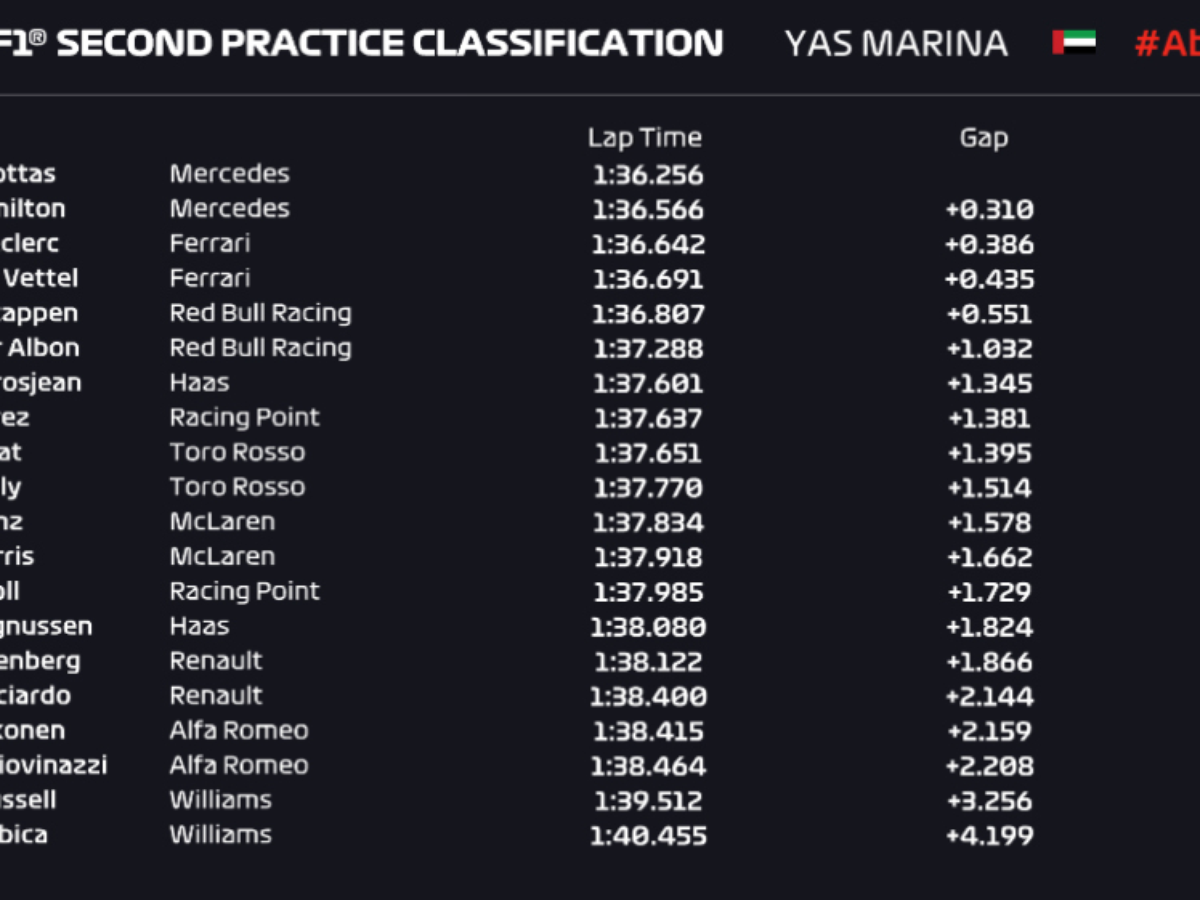 Confira os tempos do segundo treino livre de Abu Dhabi: