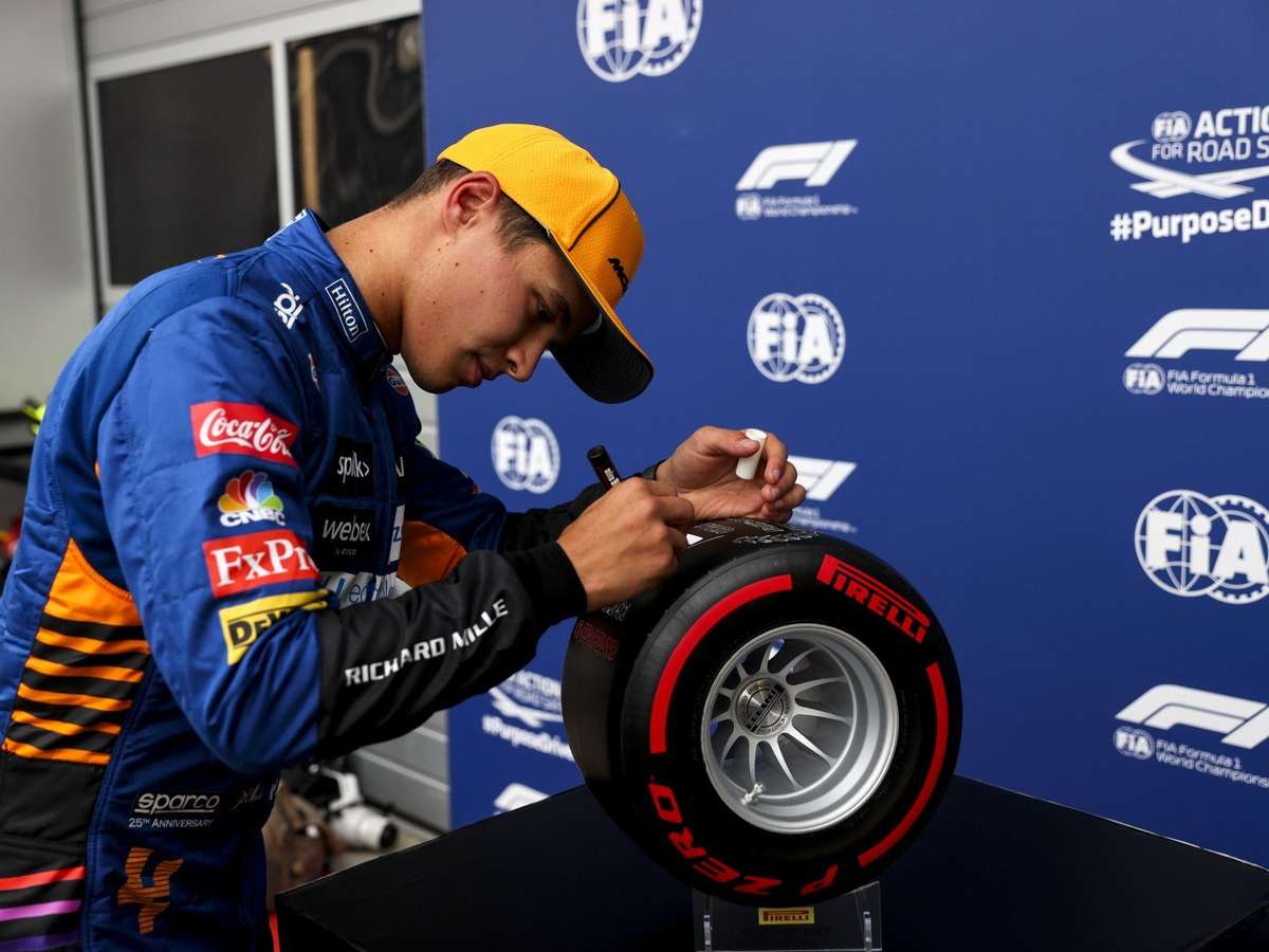 Logo mais, Lando Norris vai largar na pole-position pela primeira vez na carreira. O britânico surpreendeu em uma classificação marcada pela chuva em boa parte da sessão, mas que teve a pista mais seca no Q3.