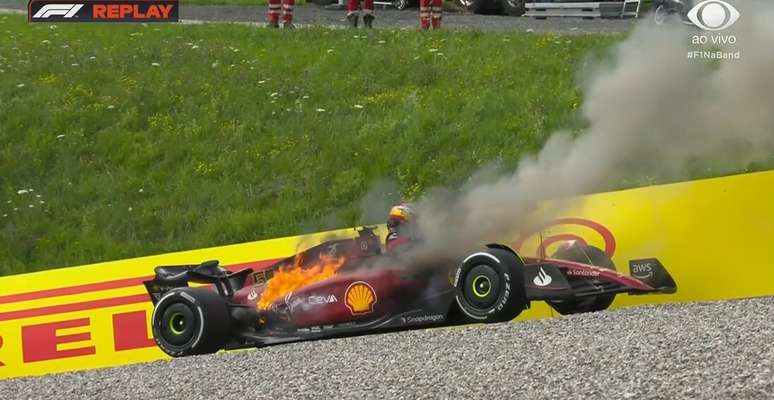 Carlos Sainz parecia ter deixado a maré de azar na temporada para trás após a vitória na última etapa no GP de Silverstone. Porém, na Áustria, a Ferrari do espanhol voltou a ter problemas mecânicos e assustou todo mundo. O motor deu problema na volta 58 e o carro acabou pegando fogo.