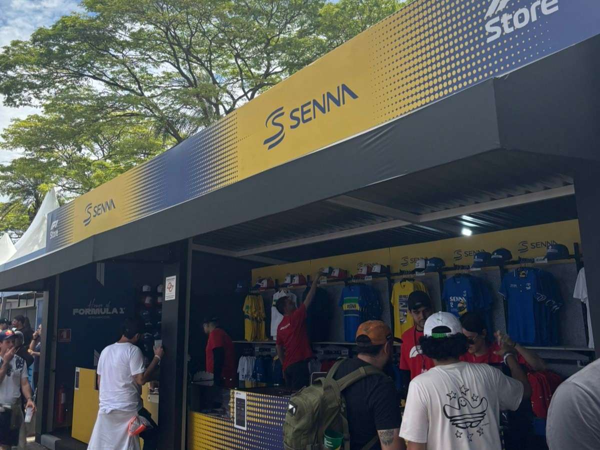Há, também, uma loja com produtos licenciados da marca Senna, com itens que remetem à trajetória do ídolo brasileiro Ayrton Senna. O tradicional boné azul com a logo do banco Nacional e a assinatura do piloto é vendido por R$ 550. Outros produtos da marca, como camisetas e casacos, chegam a R$ 1,8 mil.