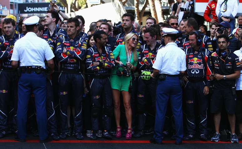 Em 2011, Geri Halliwell já visitava a equipe Red Bull em Monaco... (Foto: Vladimir Rys/Getty Images)