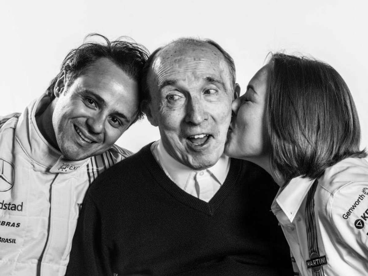 Felipe Massa (piloto titular), Frank Williams (dono) e Claire Williams (chefe-adjunta)