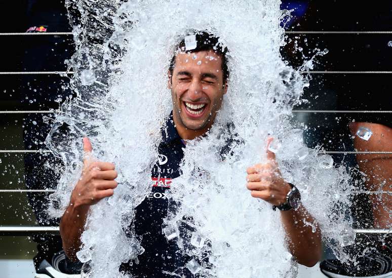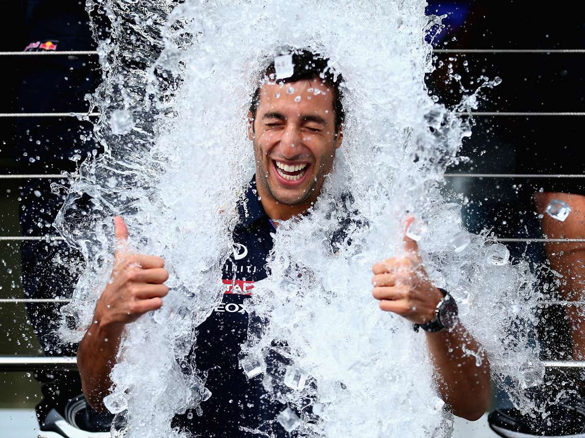 O sucesso do desafio do gelo enfim chegou à Fórmula 1. Depois de Felipe Massa ser desafiado por Alexandre Pato, tomar o "banho gelado" e até levar a brincadeira ao narrador Galvão Bueno, foi a vez de Lewis Hamilton e Daniel Ricciardo entrarem na campanha de doações ao tratamento da Esclerose Lateral Amiotrófica (ELA).