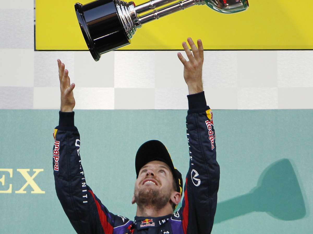 Vettel já está acostumado a beber o champagne da vitória após as corridas