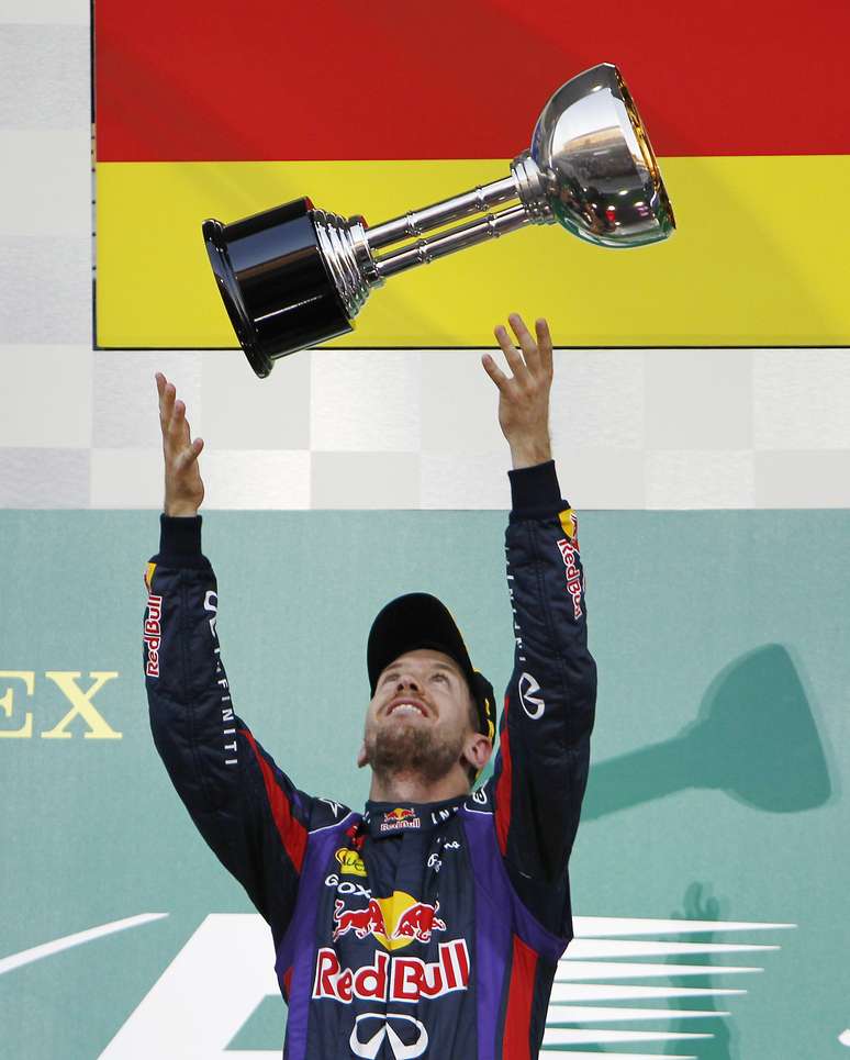 Dessa vez Vettel usou até o troféu para beber o champagne