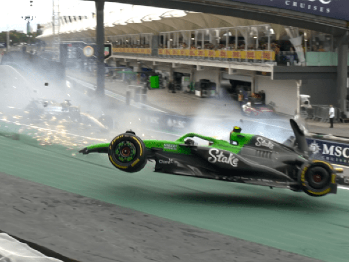 Bortoleto ocupava a 11ª posição e disputava o 10º lugar com Alex Albon, da Williams, quando perdeu o controle na entrada do S do Senna, ainda no fim da reta principal. O carro atingiu o muro dos boxes e, em seguida, foi lançado para a área de escape.