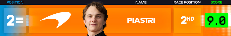 2=. Oscar Piastri (McLaren) - Nota: 9.0
