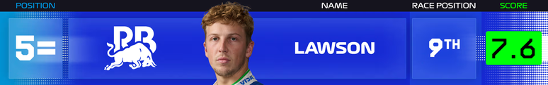 5=. Liam Lawson (Racing Bulls) - Nota: 7.6