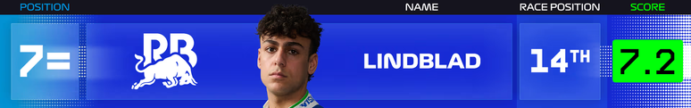 7=. Arvid Lindblad (Racing Bulls) - Nota: 7.2