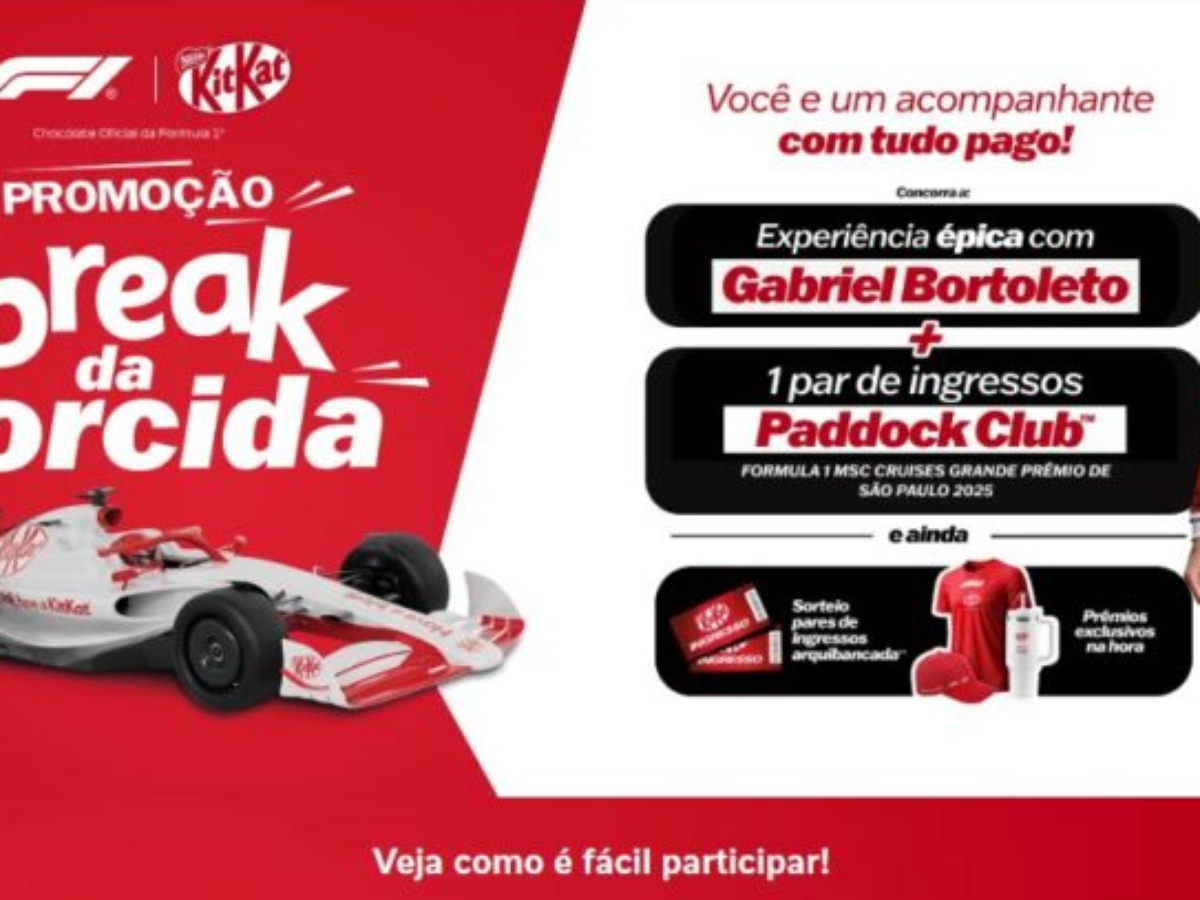 A KitKat, marca da Nestlé, está dando aos fãs de Fórmula 1 a chance de viver um momento único no GP São Paulo 2025. Por meio da promoção “Break da torcida”, consumidores poderão ganhar prêmios exclusivos e até acesso ao cobiçado Paddock Club, com direito a um encontro com o piloto brasileiro Gabriel Bortoleto.