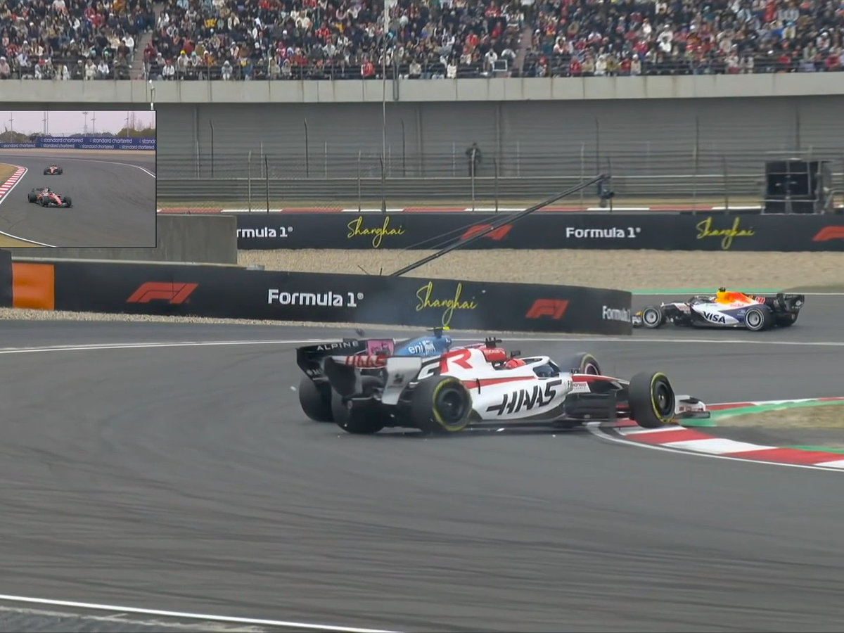 O incidente ocorreu no momento em que o piloto da Haas retornou à pista após realizar o seu pit stop, encontrando imediatamente o carro da Alpine. A disputa por espaço se estendeu pelas primeiras curvas do traçado chinês de forma agressiva, até que o toque entre os dois carros se tornasse inevitável, comprometendo o traçado e o ritmo de ambos.