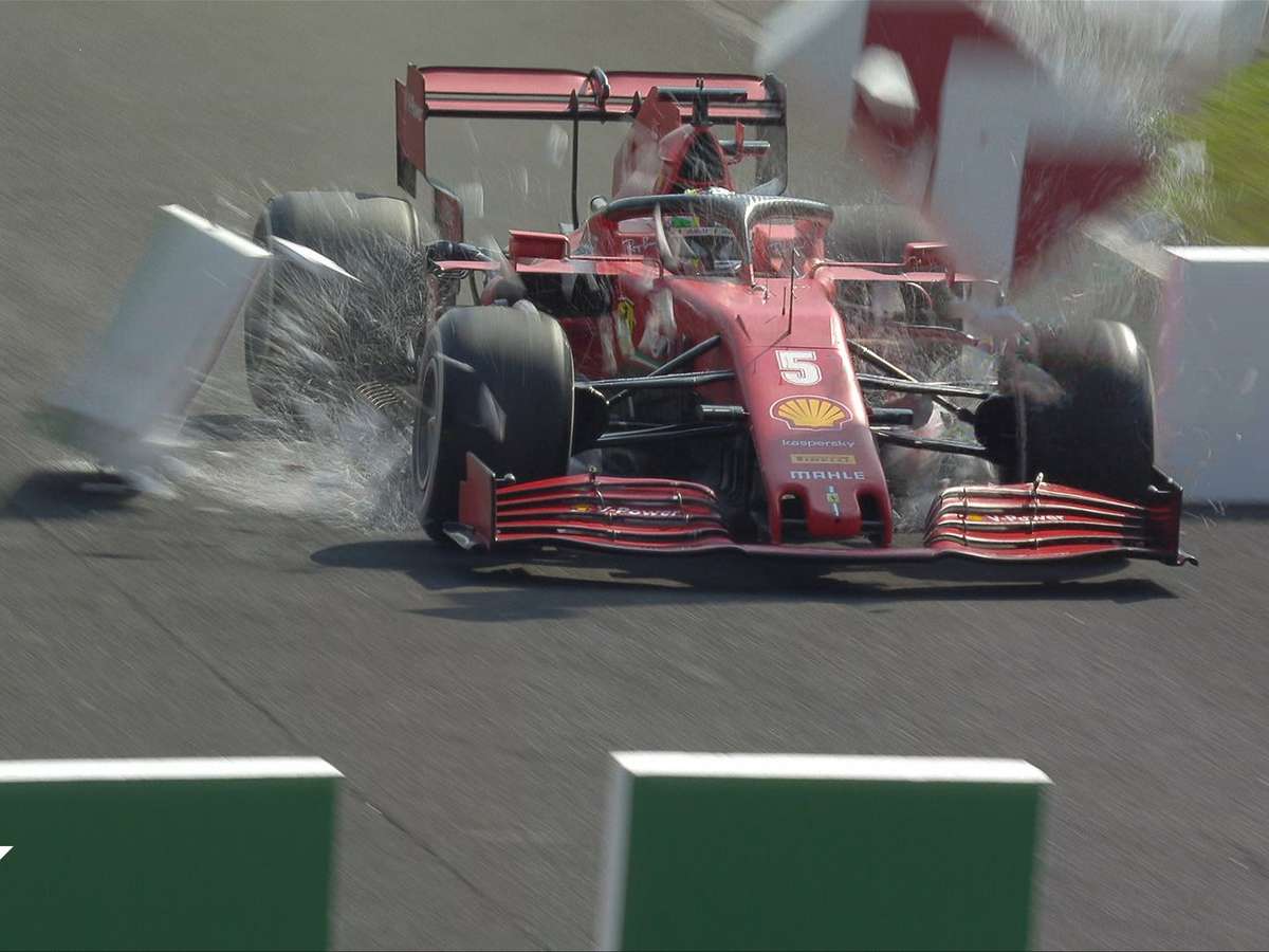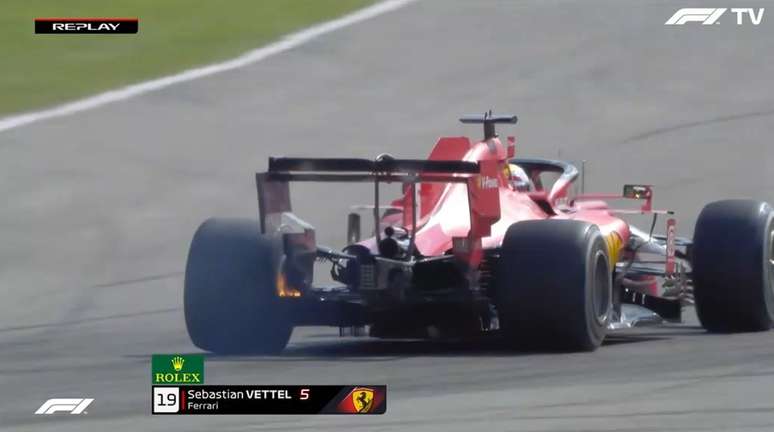 Vettel ainda conseguiu levar o carro de volta aos boxes, mas abandonou na sequência. Algum tempo depois, na volta 25, o fim de semana da escuderia italiana ficou ainda pior, já que Charles Leclerc bateu forte na Parabólica e também abandonou.
